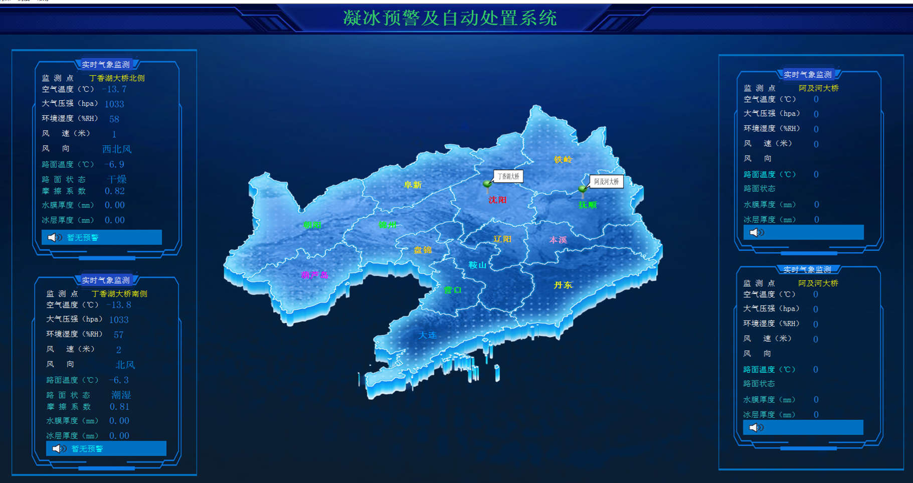橋面凝冰預(yù)警及自動化處置系統(tǒng)是為應(yīng)對冰雪災(zāi)害、精確預(yù)測結(jié)冰時間、提前處置,將“除冰”變成“防冰”,并基于物聯(lián)網(wǎng)技術(shù)的一種橋面凝冰自動化處置系統(tǒng)。該系統(tǒng)由交通氣象預(yù)警預(yù)報系統(tǒng)、自動化控制系統(tǒng)及噴灑系統(tǒng)組成。